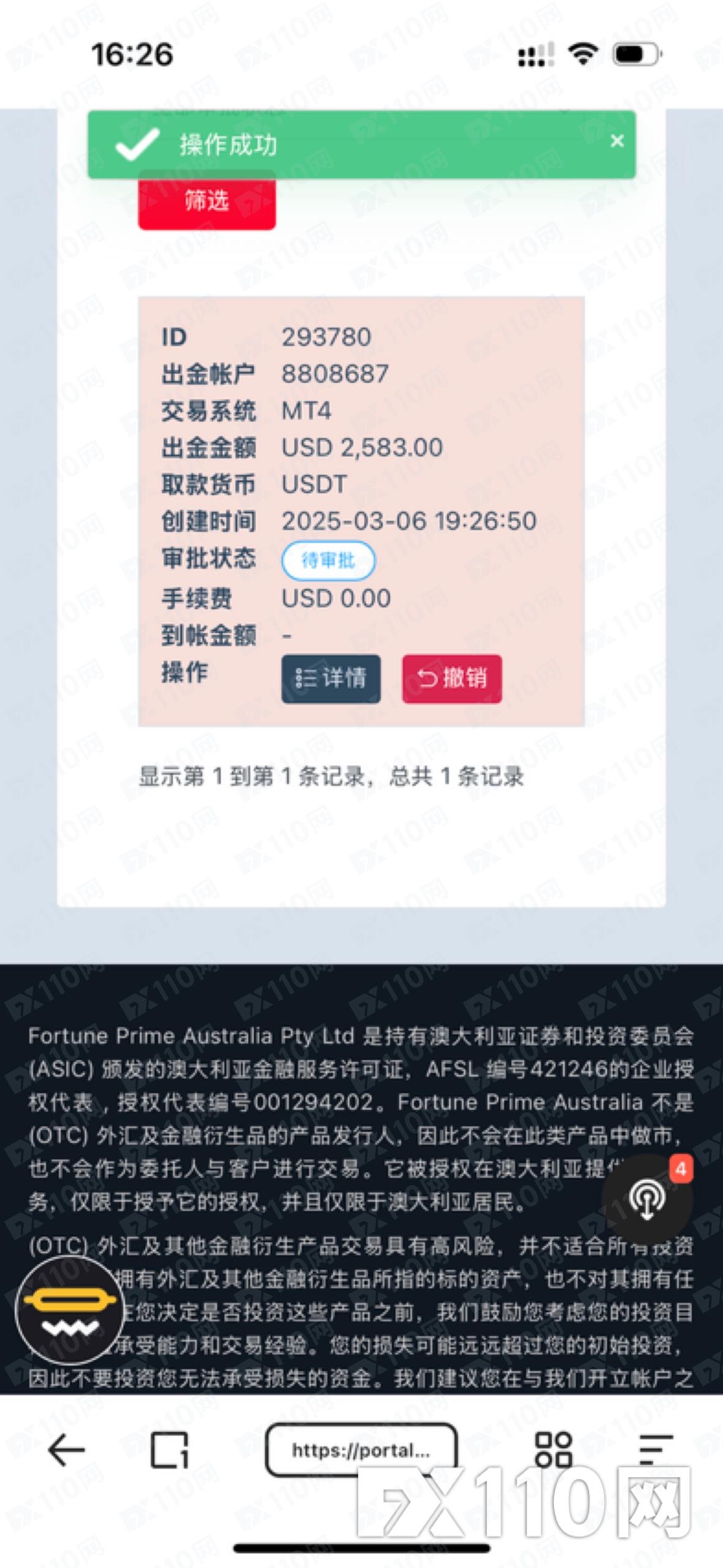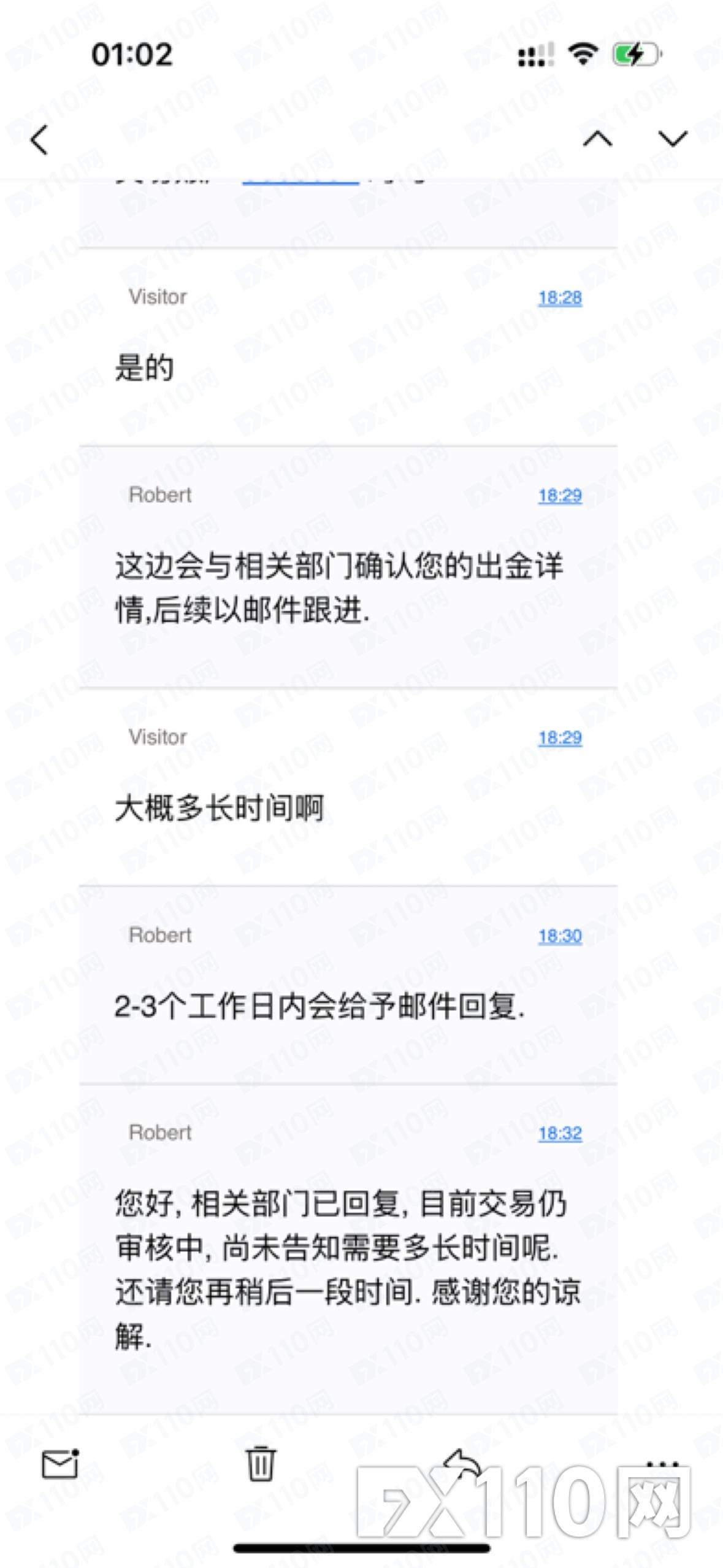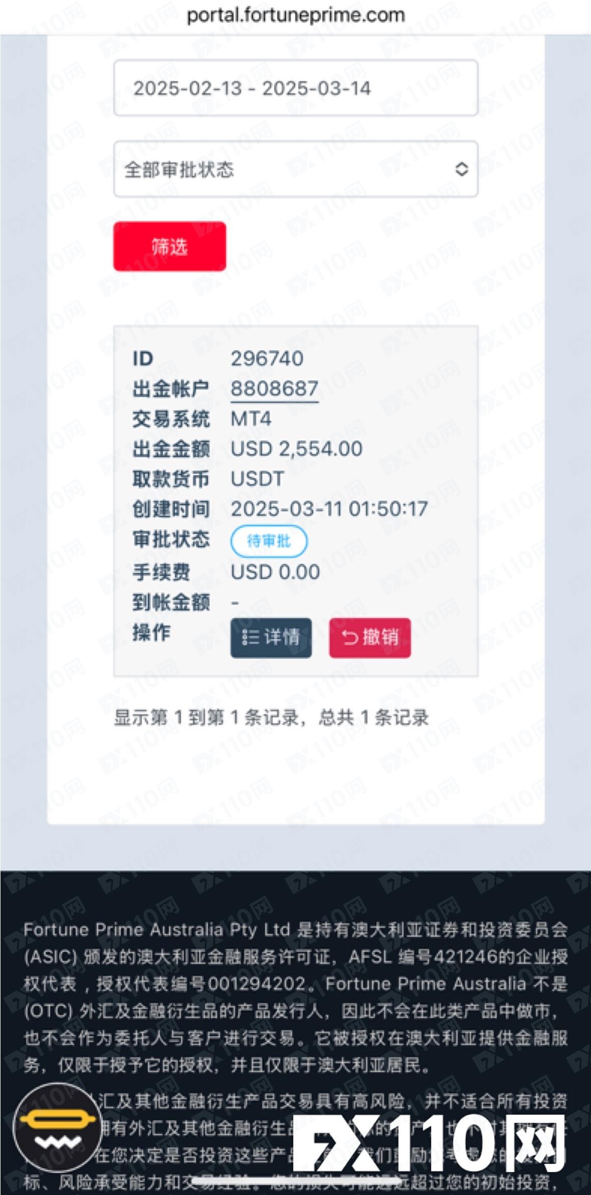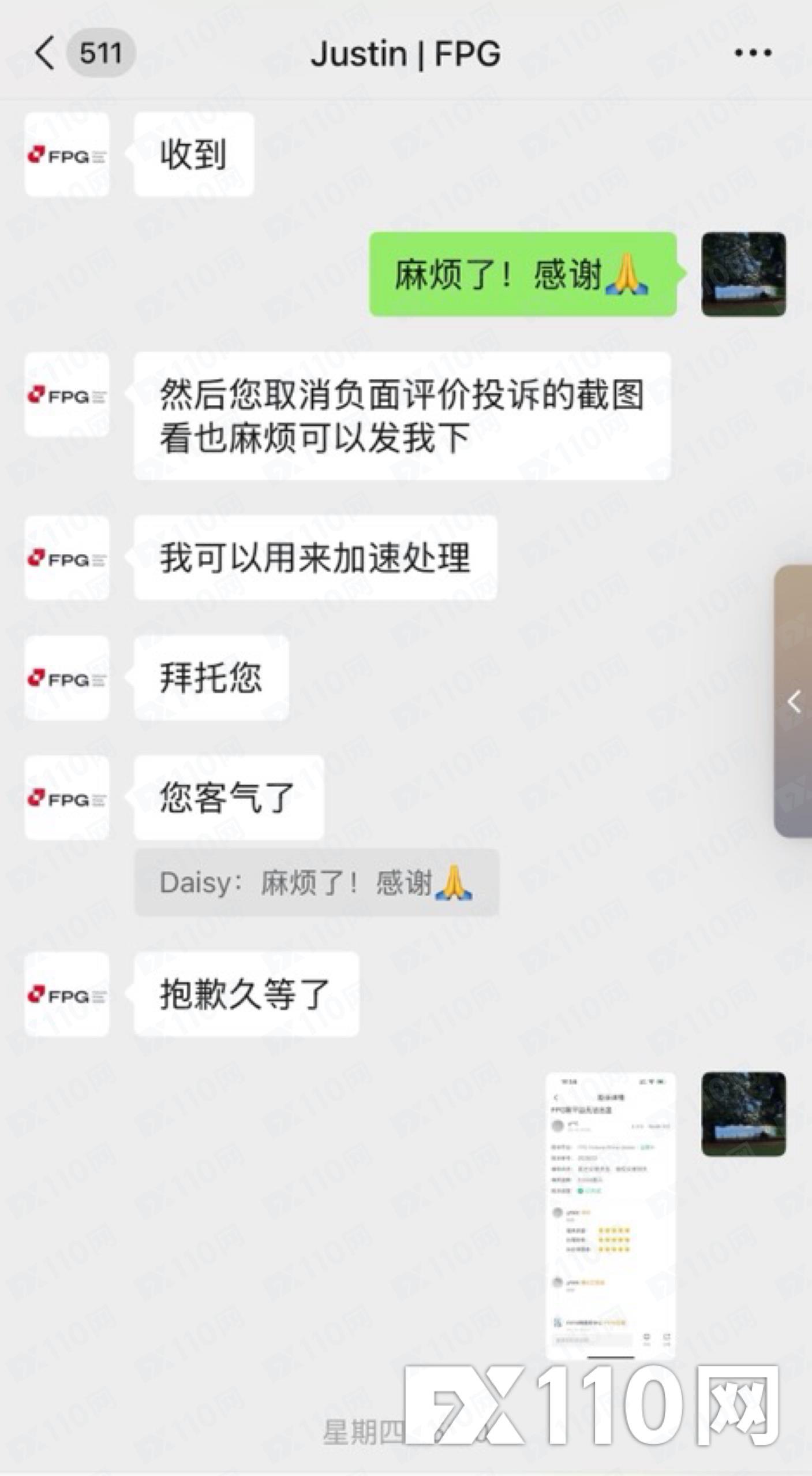 2025年2月12日在FPG平台入金500美金,盈利2054美金,卻不給出金 ,總金額2554,嘗試出金一直顯示待審核,平台沒有任何回复,也沒有收到相關郵件。 3月20日平台郵件回覆說明需進行二次KYC驗證,於是我又進行了KYC驗證,驗證便一直沒有消息。 3月26日FPG客戶經理要我刪除在FX110的投訴,客戶經理說最早3月28日便可以出金,最晚4月1日出金,隨後我便完結了在FX110的投訴,3月31日昨天給客戶經理發送消息問詢進度,沒有得到任何回复,今天有問詢進度依舊是沒有得到任何消息以及郵件,截止目前本金和盈利均未出金,我遭到了他們平台的欺騙,跟我說刪投訴就能出金,這就是一個騙子黑平台。