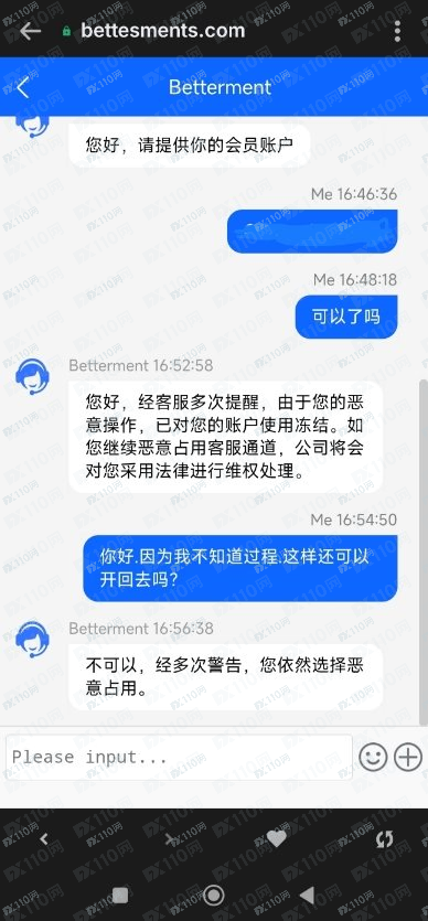說惡意操作也不說清楚哪裡惡意操作,就是不給金,凍結帳戶去問客服還說惡意佔用客服通道!