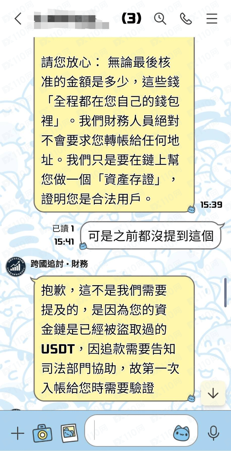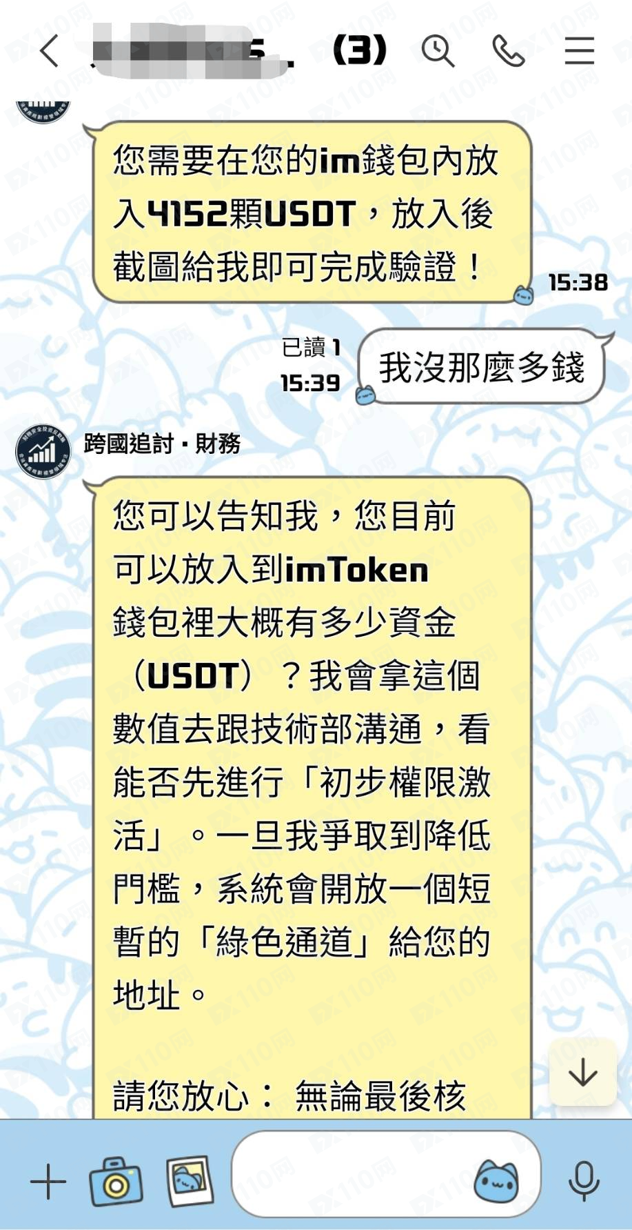 具體經過:一開始是在網路搜尋,後來跳出部落格內容說區塊鏈貨幣詐騙手法及防範對策,裡面有一個line連結說可以交如何將錢找回來,加了line後會有一位小姐跟你詢問被騙狀況,後來會介紹這個境外資金索回的人,他會問你一些資料後說利用系統追查資金流向(追回需給5~10%),後來會跟你說查到了,要跟原來那位女的學下載im app,下載時故意說把助記詞截圖放在對話這樣等下比較方便設定.....等到他們說的資金已經回來後,要將錢轉進去時,會故意說因為資金是詐騙的被列為警示,要證明新辦的im帳戶是我自己的不是詐騙,需要存錢進去,還說錢不會跑掉,但是助記詞早就被那位女的看到了,如果放錢進去一定會被轉走。
