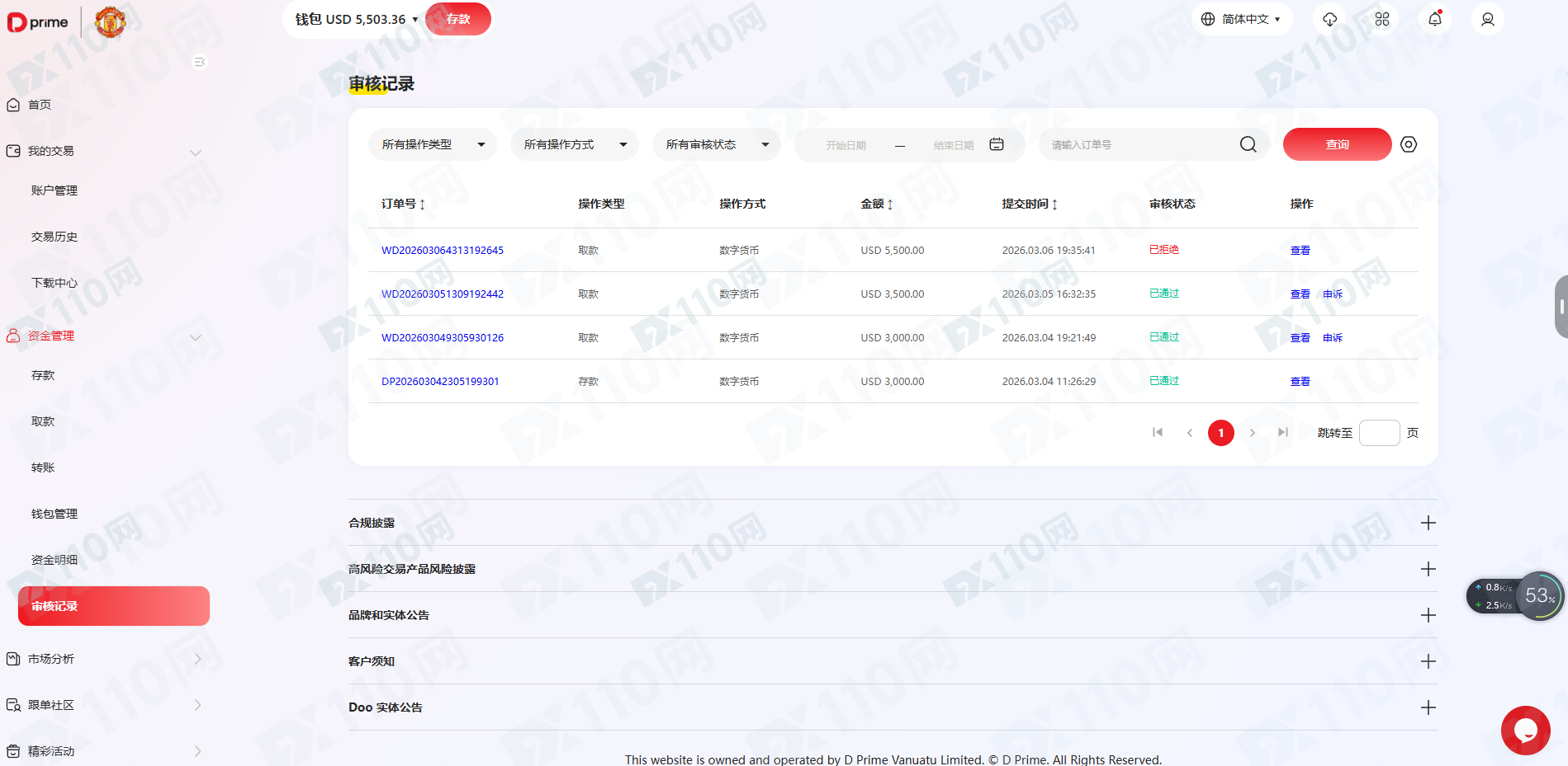 提醒所有投資者警惕D prime(德璞資本),此類平台以「待扣款項」「帳戶違規」為藉口拖延/拒絕出金,嚴重侵害投資者權益!
