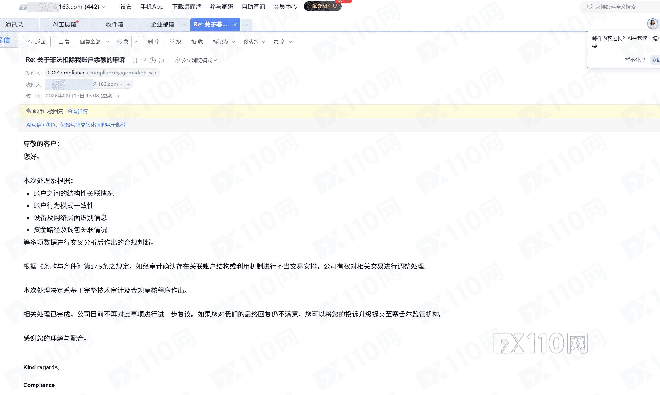 我的帳號是81244051,高匯平台無法出金,直接扣掉我帳戶餘額16837.65美金,每次給出的理由都不一樣,找客服回覆很敷衍,郵件一兩個星期回一次。
