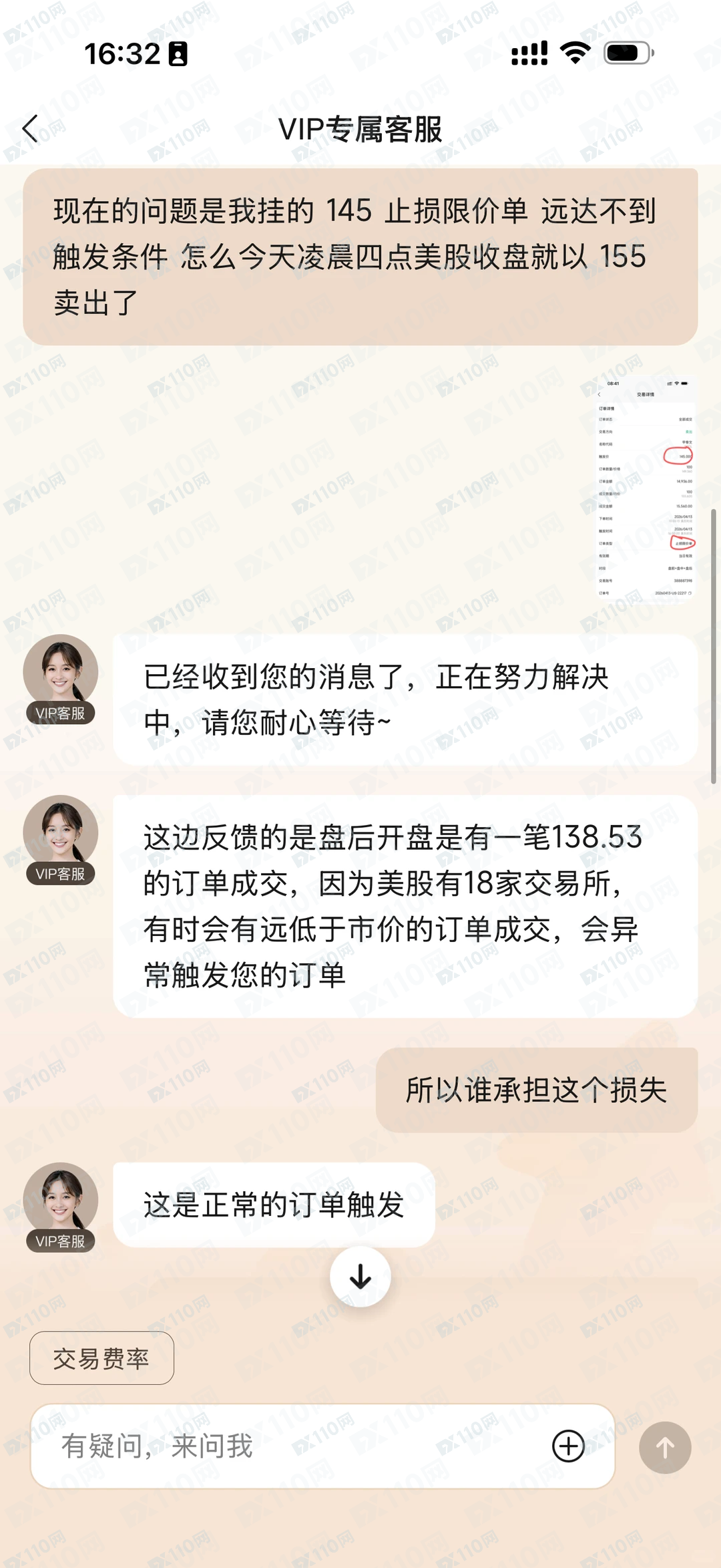 去找客服理論,只會甩鍋“盤後行情異常”“多交易所報價問題”,完全不承認自己系統有問題,也不處理損失。股價155好好的,你把我145才觸發的停損單直接市價砸盤賣了,這不是滑點,不是行情問題,這就是券商亂成交、無視用戶訂單規則。