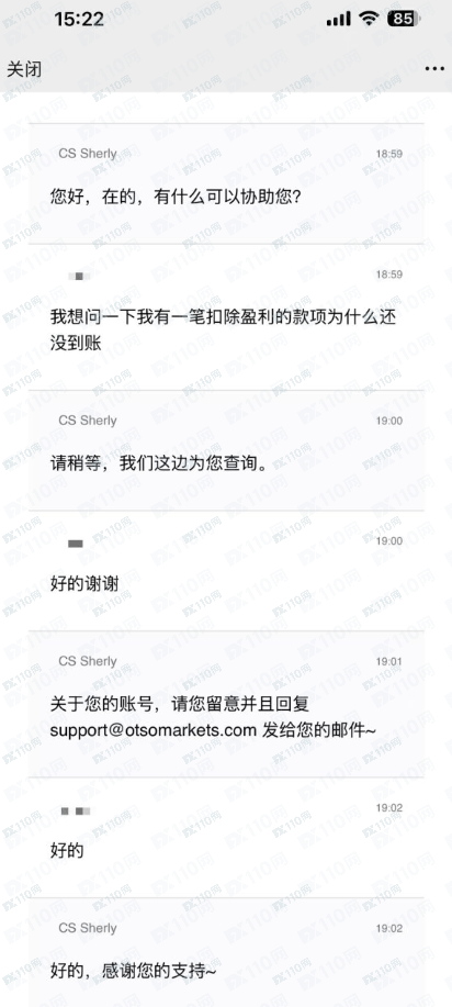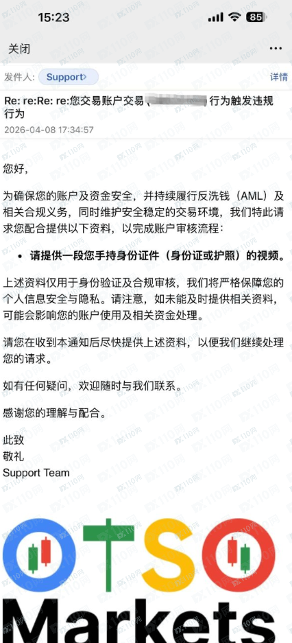 OTSO Markets平台在扣除獲利要求本人配合拍攝手持身分證影片後仍拖欠本金不給出款,從回覆郵件至今已過一星期有餘,遲遲不處理。