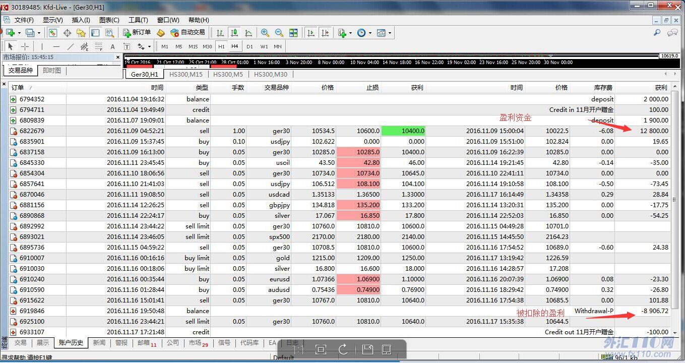 在凱福德平臺做單盈利后,平臺將利潤扣除。