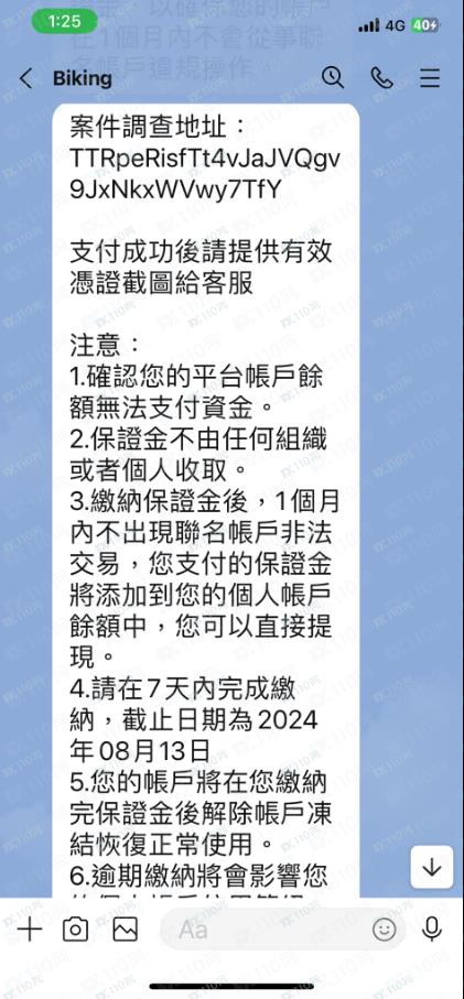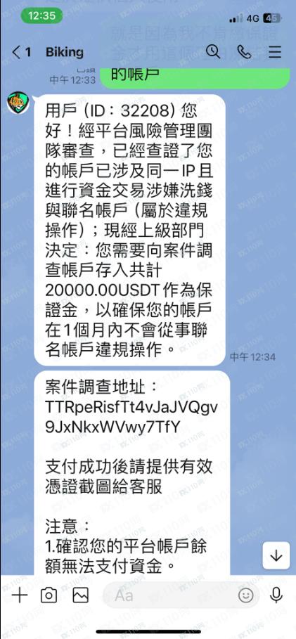 該詐騙平台說當初我投資的資金是不明來源還說當初借我50,000美金的人是詐騙集團的成員要求我要繳交20,000的保證金後才能把錢領回來這種鬼話誰會相信。
