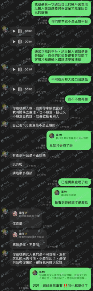 這個男人自稱叫溫建華,香港人⋯⋯因為爸爸過世所以回來台灣定居,媽媽是花蓮的原住民,住在大安區仁愛路,在星雲國際公司擔任技術顧問,前面先誘導說他們公司有項目不錯,在用愛情洗腦你投資不斷強逼你去信貸或者用信用卡提高額度,再不然就一直叫你去跟朋友借,最後平台要出金的時候,再顯示你錢包地址輸入錯誤,若想拿回錢必須再丟一筆保證金才能取回,目前已備案,附上網頁、對話截圖,希望不要再有下一個受害者了!