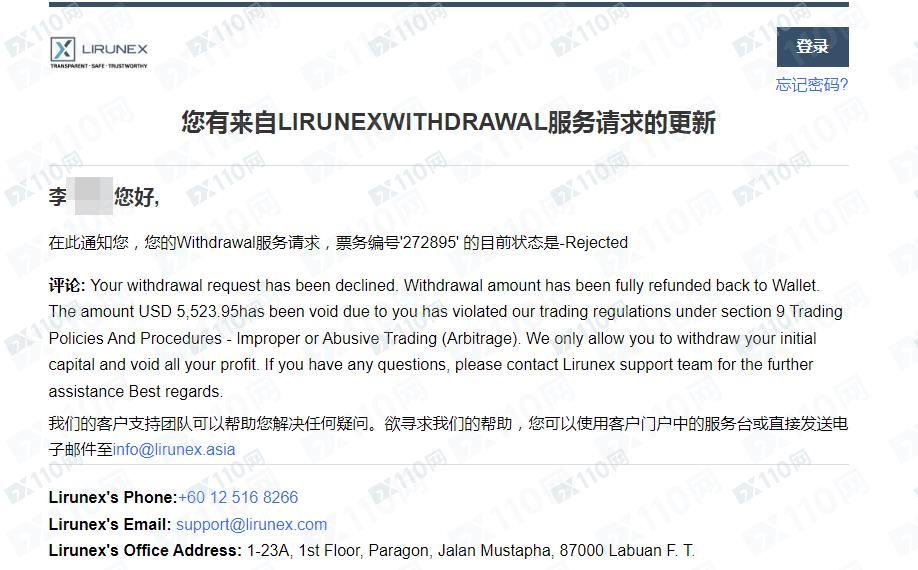 本人在LIRUNEX利惠平台入金了10054美金,操作了一個多月,帳戶總資金達到15577.95,出金時被拒絕,並著了個莫須有的理由直接扣掉了我的盈利5523.95。現告知大家,並檢舉這個黑平台!