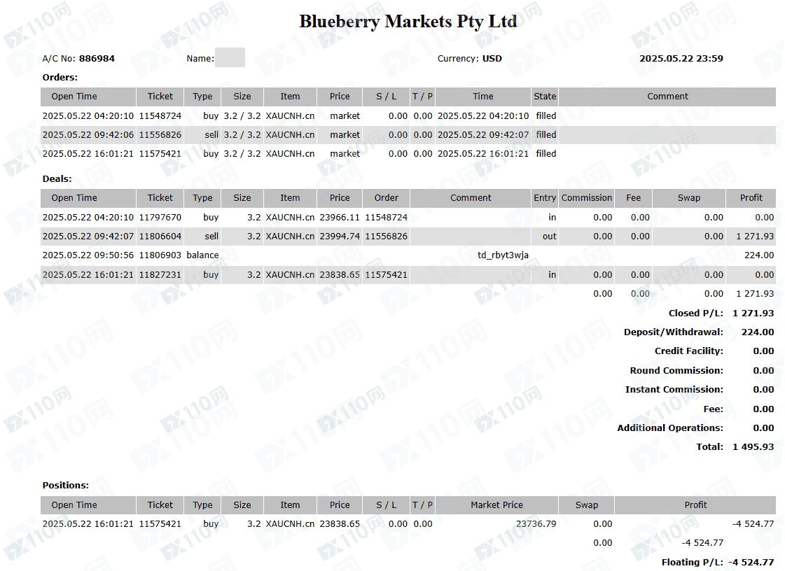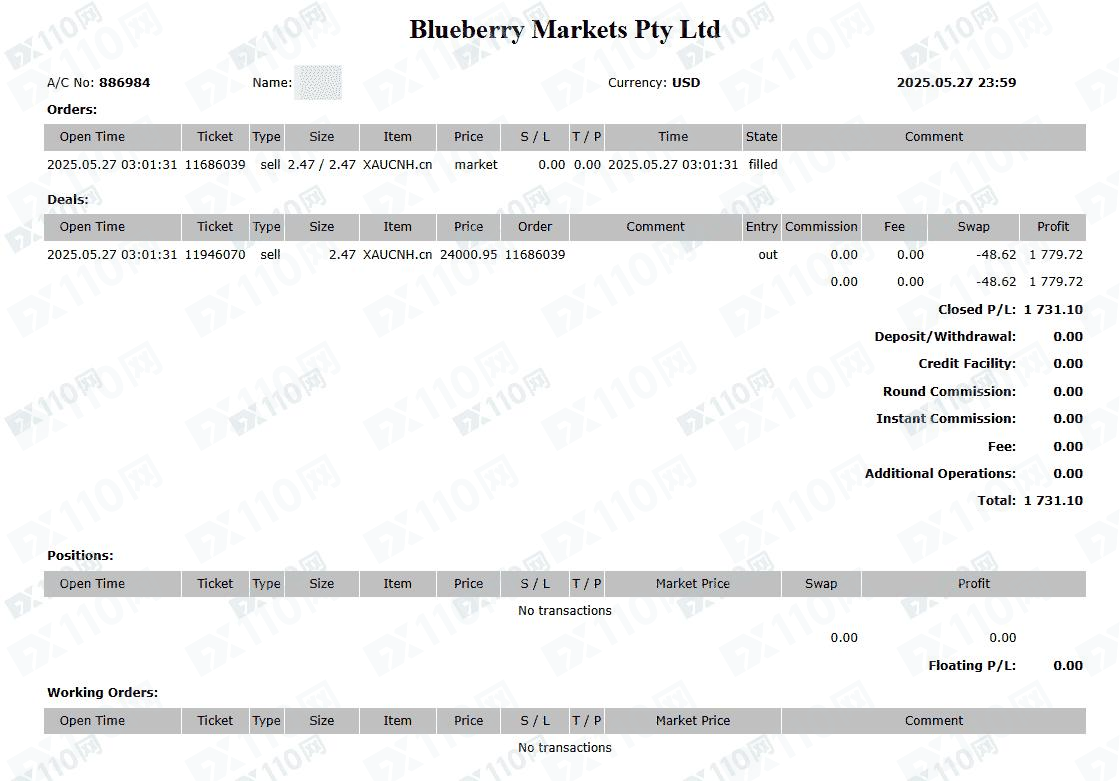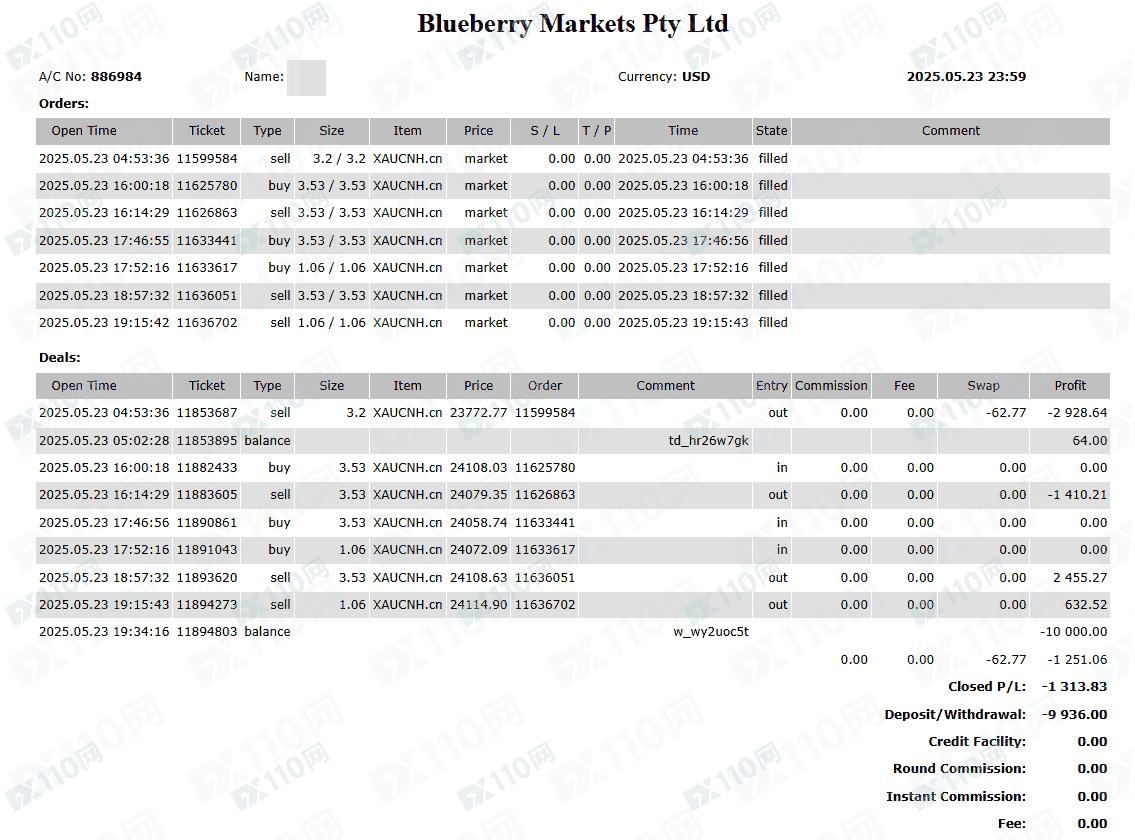 MT5交易帳戶:886984,純手工單,交易時段北京時間9-30至零時2點左右,入金一萬美元(國際電匯),先虧後賺,提款時被栽定交易時段利用流動性不足,盈利清零。