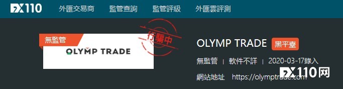 Olymp Trade平台的網址為https://olymptrade.com,FX110網早在2020年已將其納入虛假交易商名單。作為一家沒有任何監管牌照的經紀商,Olymp Trade無疑是成功的,它在這個市場存活已達四年之久,而它之所以能延續這麼長時間,很大程度上應該是依仗於其「半黑半白」的作風,也就是說,不是所有用戶都會被騙,或者說被騙了也發現不了。