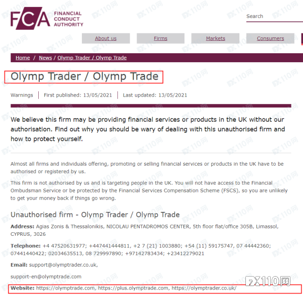 一直以來,Olymp Trade都是宣稱受國際金融委員會的監管,我們在金融委員會的會員列表中查詢到有對應平台。但是請注意,金融委員會僅為一家自律機構,不是監管!而早在2021年5月,英國FCA已將此平台列入警示名單,請注意規避風險。