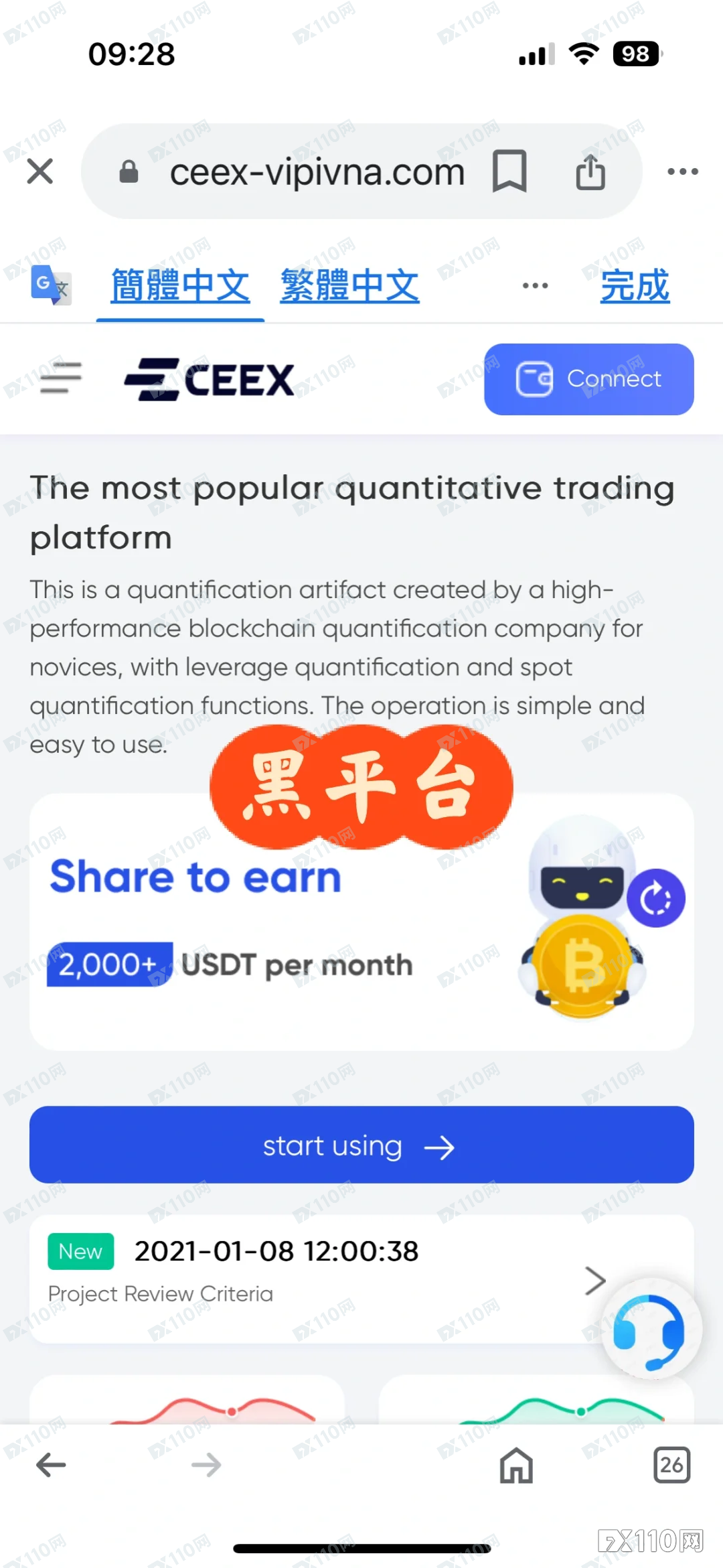 近日,一名投資者在假冒CEEX交易所(網址:https://ceex-vipivna.com/)嘗試提款時,資金卻無法取出,10萬美元(約329萬元台幣)說沒就沒了。