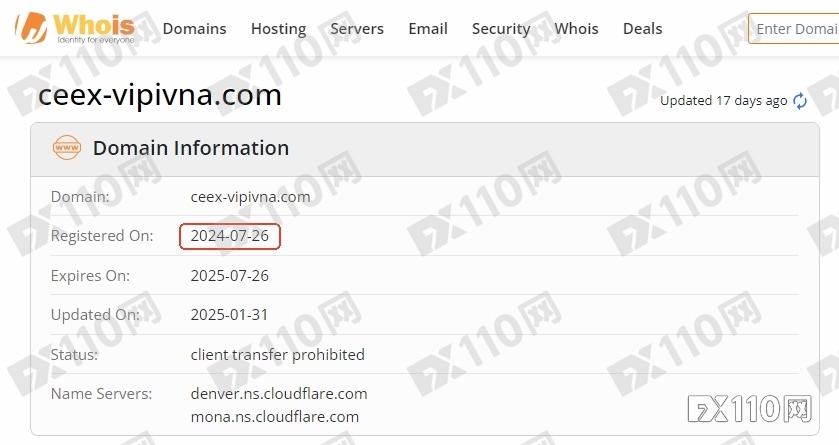 經調查,假冒CEEX交易所的網站(https://ceex-vipivna.com/)成立於2024年7月26日,運營時間極短。