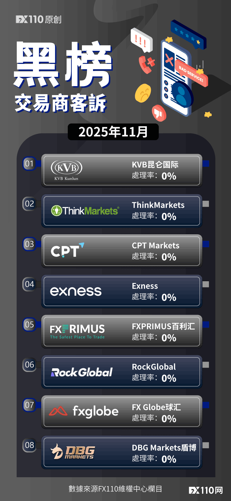 很多坑并不需要親自去踩才看得清,一家交易商好不好,從其投資者的口碑中可窺知一二。交易商對于客訴問題的處理效率展示了其客服辦事效率和服務態度,從側面也反應出交易商對于客訴的重視程度。接下來,我們一起來看看2025年11月份有哪些交易商登上了客訴黑榜。