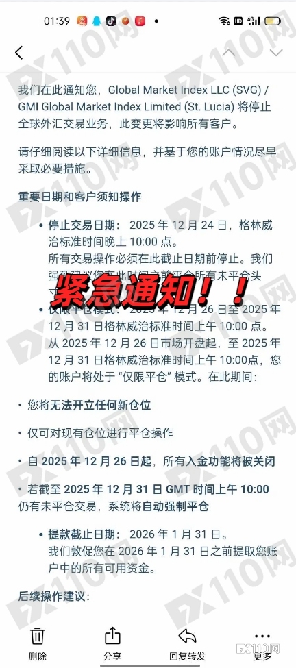 建議所有GMI客戶立即登錄交易賬戶,核實持倉情況,并制定在最終期限前的平倉與出金計劃。同時,妥善保存所有交易記錄、賬戶流水及與平臺溝通的憑據,以備查證。