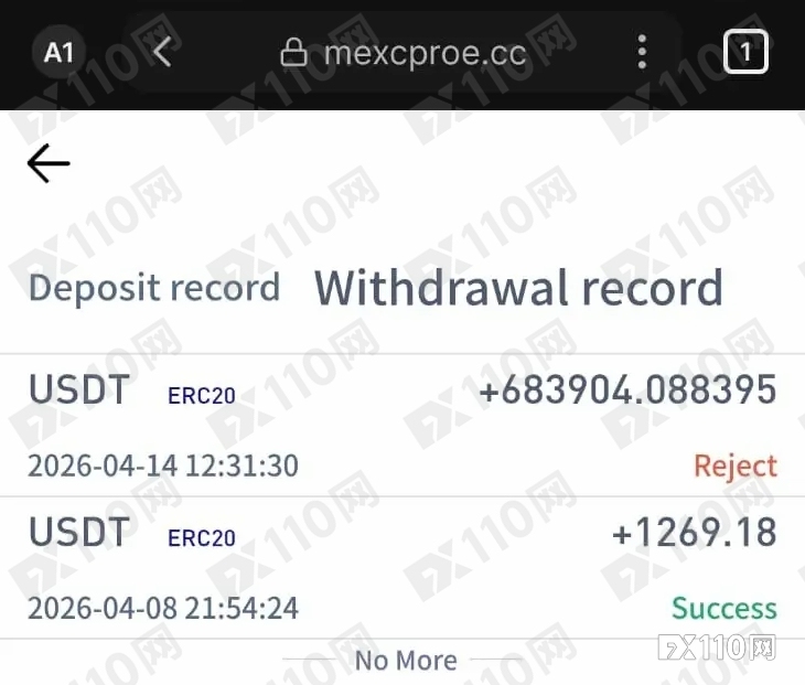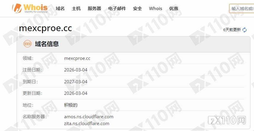目前,mexcproe.cc 已徹底關閉,該域名創建于2026年3月4日,存活不到兩個月,是個不折不扣的假冒平臺!不知道還有多少像這位匯友一樣的投資者,在同一平臺或類似平臺上被凍結著資金、苦等著客服、憧憬著提現,卻不得不面對一個冰冷的事實:平臺早就跑了,錢再也回不來了。