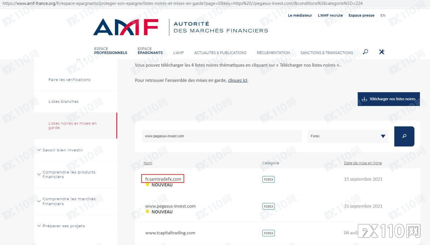 法國AMF於2021年9月15日將德興匯列入警示名單