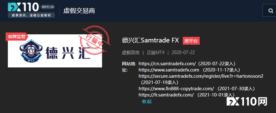 事實上,德興匯Samtrade FX因未經授權即非法提供金融服務,已分別於2021年7月2日、9月15日分別被新加坡MAS、法國AMF列入警示名單。