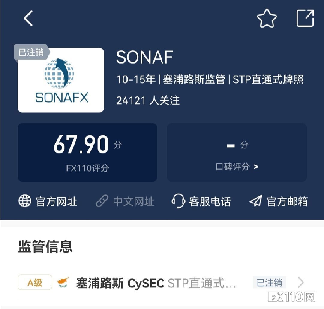 Sonafx 早在 2021 年 11 月就放棄了其CySEC授權的CIF許可證。當時,CySEC 明確表示,Sonaf 放棄許可證完全是基於公司的決定,而不是由於任何監管行動。( 相關閱讀: 黑平台剋星(上)認識3大監管機構 )