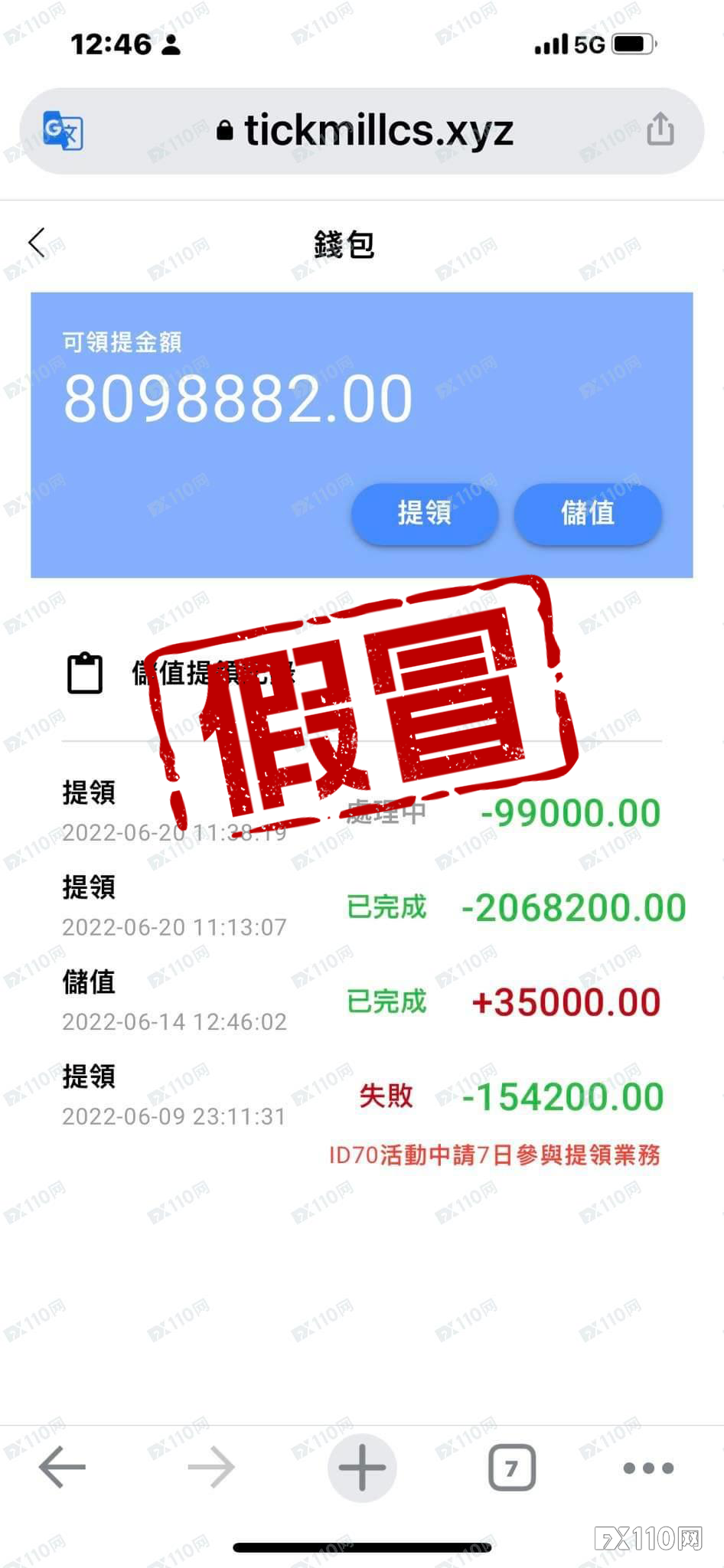 轉眼一個多月過去了,匯友帳戶資金依然是分文未能提取,網上到 FX110查詢才知道自己交易的Tickmill平台是假冒的。